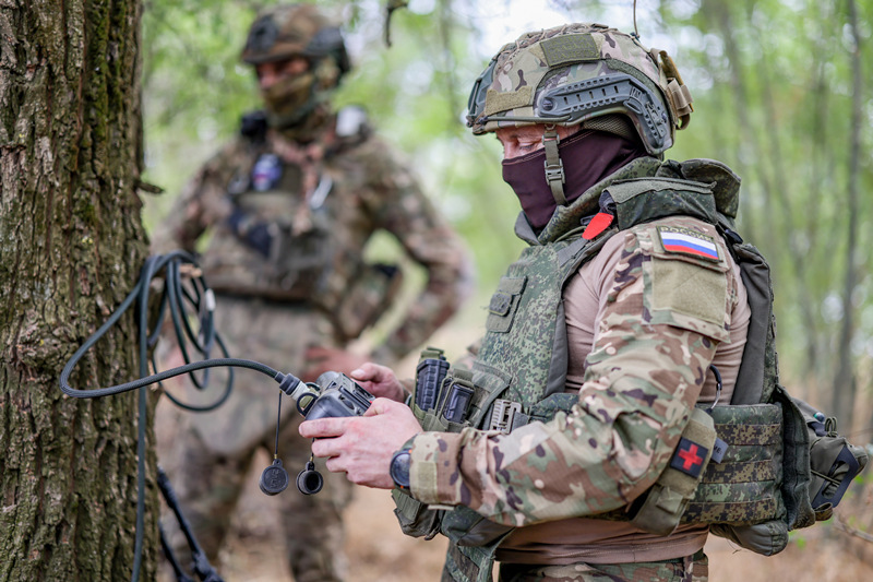 当地时间2025年8月11日,赫尔松地区,俄乌冲突持续,俄军士兵组装巡飞弹。 IC Photo